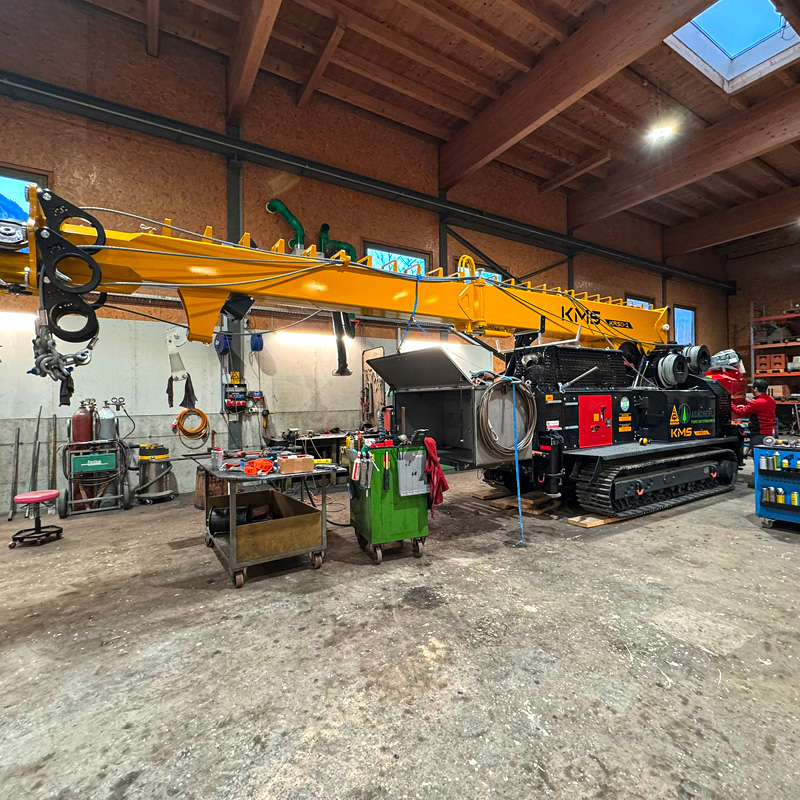 Im Frühling 2025 wurde unser Maschinenpark durch eine hochmoderne Seilkrananlage mit Raupenfahrwerk erweitert. Die Bezeichnung KR50-1 steht für modernste Seilkrantechnik in Kombination mit höchster Mobilität direkt am Einsatzort. Mit einer Reichweite von bis zu 1'000 Metern im Dreiseilsystem und einem geländetauglichen Raupenfahrwerk ist der KR50-1 die ideale Lösung für anspruchsvolle Seilkraneinsätze in unebenem oder schwer zugänglichem Gelände. Die kompakte Bauweise sowie die komplett funkbasierte Steuerung ermöglichen ein äusserst flexibles und sicheres Arbeiten unter verschiedensten Bedingungen.