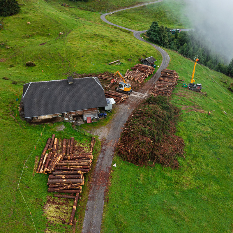 Wir erschliessen neue Wälder – indem wir unerschlossene Bestände nutzbar machen, wertvolles Holz mobilisieren und den Schutzwald pflegen.